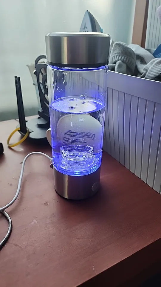 A hydrogen bottle is designed to produce hydrogen water using a process called electrolysis. When you fill the bottle with purified or mineral water and activate the device, an internal electrode—typically made of platinum or titanium—splits the water (H₂O) into hydrogen (H₂) and oxygen (O₂). The hydrogen gas dissolves into the water, creating hydrogen-rich water.